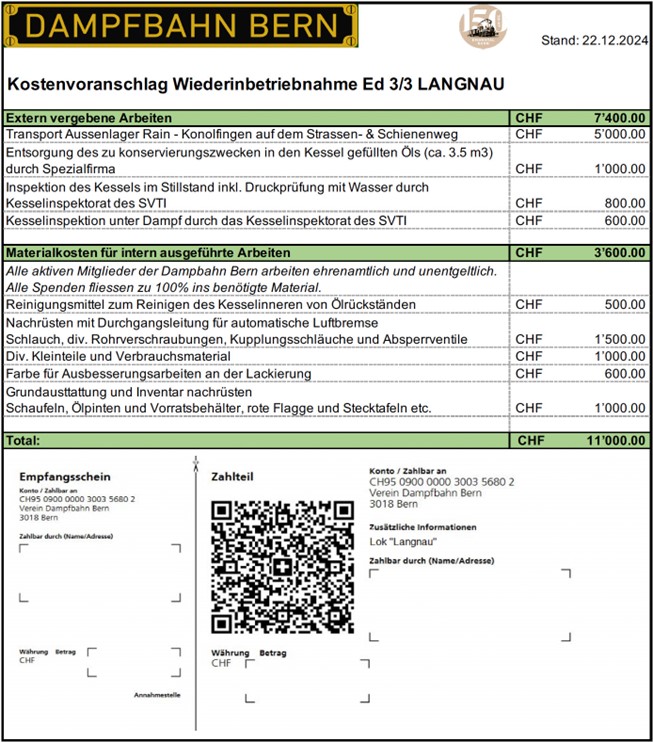 Nach der Erstbegutachtung haben wir einen Kostenvoranschlag für die Wiederinbetriebnahme erarbeitet. Die Kostenschätzung basiert auf dem aktuellen Wissenstand und kann sich infolge neuer Erkenntnisse verändern. Wir würden in jedem Fall wieder transparent informieren.